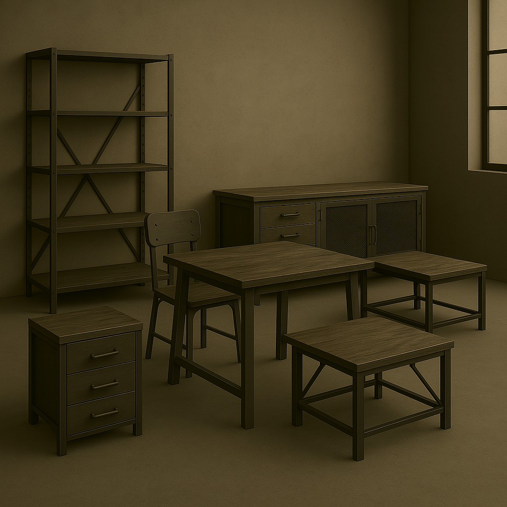 industrijskog namestaja: police, stolice, kuhinje,